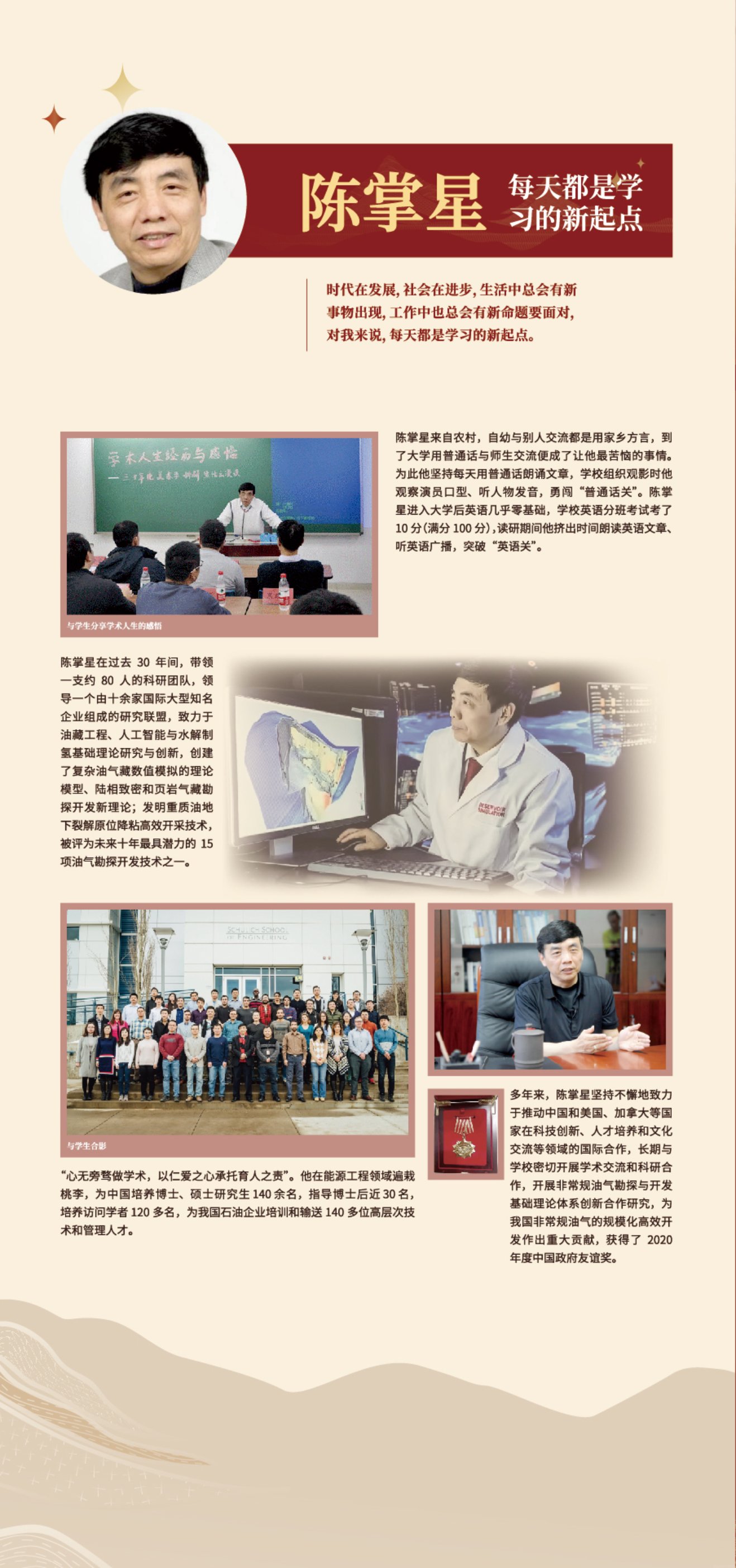 国际著名油藏工程专家,在渗流力学研究、油气提高采收率工艺新技术、油藏数值模拟理论与方法、人工智能、可视化技术、技术转让和应用等方面取得突出成果。