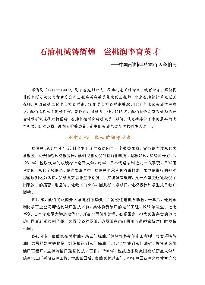 “要培养合格的石油机械专门人才,关键是要抓好师资队伍建设、专业建设和教材、实验室建设。”
