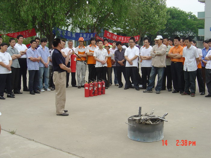 2009年5月13日和14日下午,我处分别对图书馆和餐厅员工进行新《消防法》的教育和灭火演练。图书馆和餐厅相关员工参加了培训。