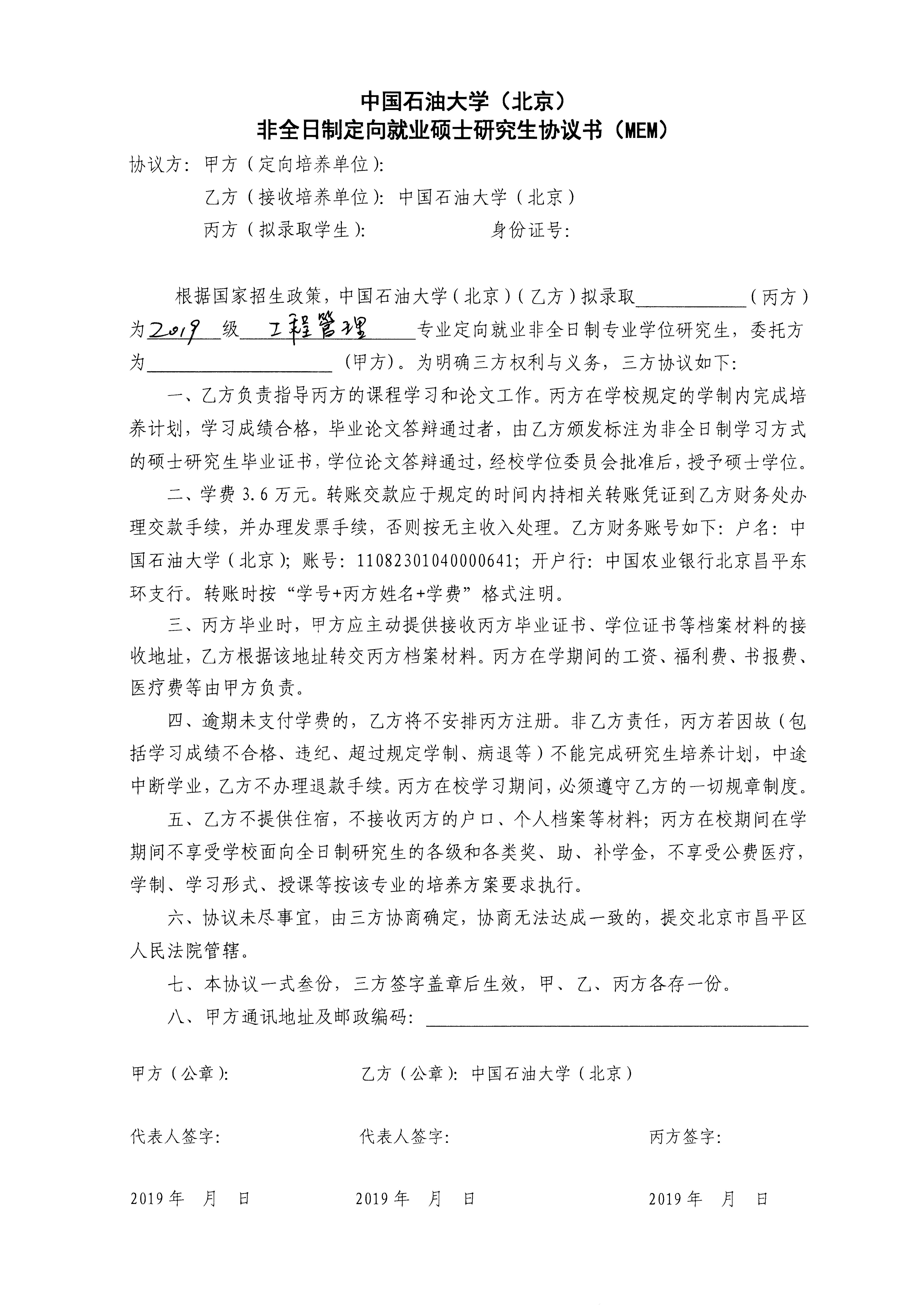 非全日制工程管理MEM专业硕士三方协议