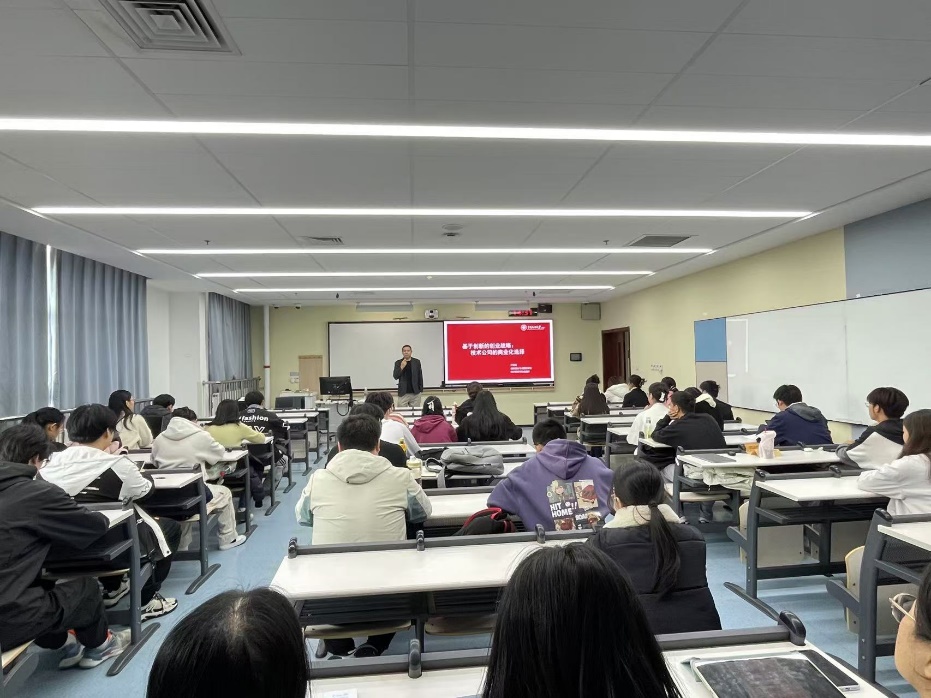 齐继国老师以米老师和雨刷器两个案例为始,讲述了创业战略的理论和框架以及战略分析框架。接着齐老师结合材华科技的创业、成长及技术创新的真实经历,分阶段解析在创业过程中的技术创新及创业战略应该如何选择和定位。讲座生动有趣,引人入胜。在最后,齐老师强调,同学们要经常反思我们的技术在商业化过程中,应该如何选择应用场景、如何进行资源整合、如何进行技术迭代创新及战略分析。
