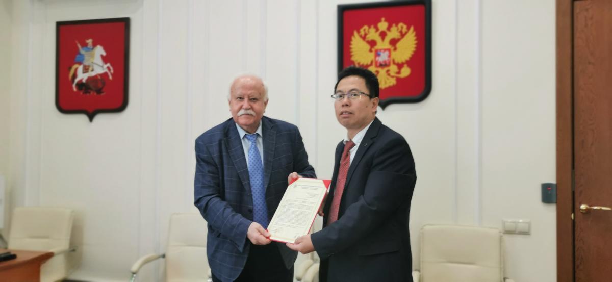 在中国驻俄罗斯大使馆,公使衔参赞周宇会见了李景叶一行。周宇听取了学校在中俄科技合作方面取得的成果,尤其是中俄碳中和AI联合实验室的建设进展及未来规划,对学校开展的工作给予肯定。