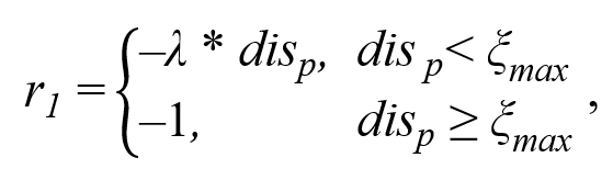 奖励R2是回合奖励,其设置的目的是为了激励智能体到达靶区,其计算公式如下: