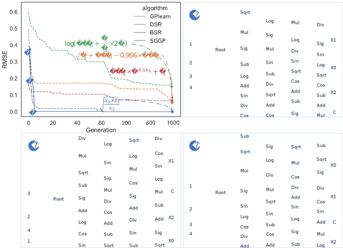 本文设计了一种新的符号图,用来描述符号回归的表达式空间。在符号图的基础上,我们提出了一种新的遗传编程方法——符号图遗传编程(SGGP)。SGGP采用极值分布以及语义相似度来计算符号图中每条边的概率。然后,它基于这些概率对新个体进行采样来有效搜索正确的表达式。实验表明,SGGP优于21种符号回归方法,其中包括最新的机器学习/深度学习方法和演化计算方法。