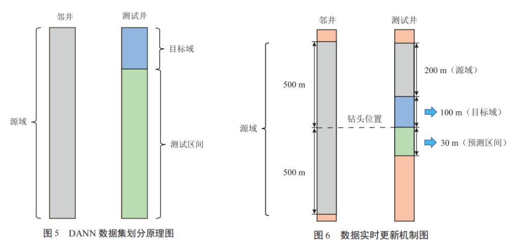 双滑动窗口:邻井滑动窗口用于采集钻进过程中钻头位置上下500 m 范围内井段的工程数据,以作为迁移学习训练的源域数据;钻井滑动窗口用于采集新钻进的100 m 数据,作为目标域数据。