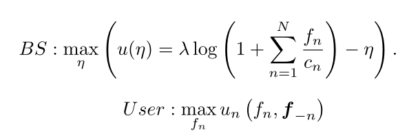 本文定义了基站和用户的效用函数,随后提出两阶段Stackelberg博弈框架来捕获参与联邦学习的各方之间的复杂互动。基站需要决定一个适当的激励方式来吸引用户参与,以获得高质量的模型。用户需要决定他们的参与程度,以最大化他们的效用。因此,优化问题可表示为