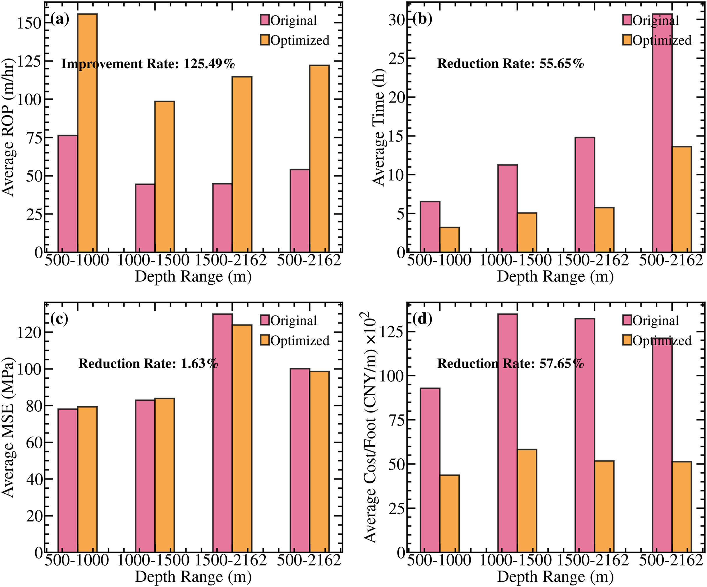 图 6显示,随着钻井深度的增加,特别是在超过中位数深度后,ROP的波动显著减少。这表明 DPODDPG 算法成功优化了钻井参数,降低了无效和过度的操作,从而最大限度地减少了资源浪费,提升了钻井效率。ROP 的稳定性与分位数回归提供的动态调整范围密切相关,确保了 ROP 不会因极端操作而增加风险。相比之下,尽管 MOPSO 算法在整个钻井过程中也实现了 ROP 的显著提升,但由于缺乏动态调整约束,特别是在钻井后期,其不合理的速度增加导致了操作风险的上升。MOPSO 算法的这种行为可能引发极端操作,尤其是在更深的钻井深度,无法适应不断变化的地质条件,进而可能导致安全事故或设备损坏。