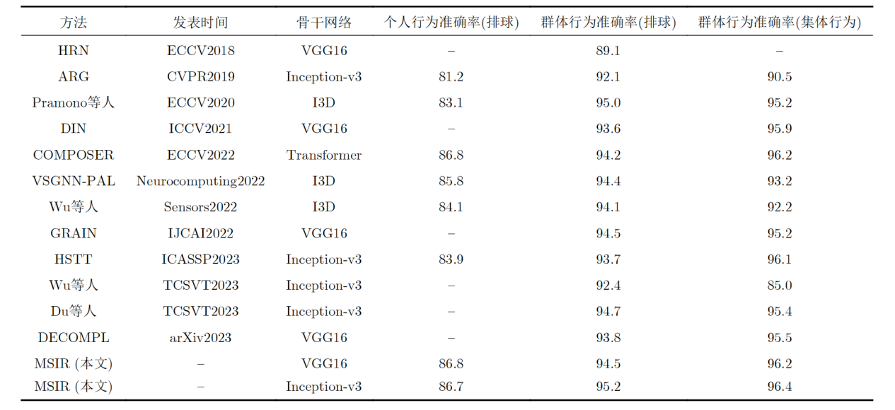 表1 排球测试数据集和集体行为测试数据集上不同方法的准确率(%)比较