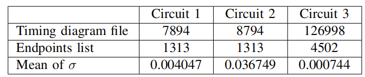 根据评分公式计算出相应的时序宽裕量准确度得分。表2比较了三种不同测试用例下SSTA和SD-SSTA算法计算的时间宽裕量准确性。从表1中可以看出,电路3的方差小,即工艺参数的变化范围很小,因此传统算法可以实现精确的计算。而电路2的方差大,传统方法无法解决,SD-SSTA算法的优越性从而体现出来。