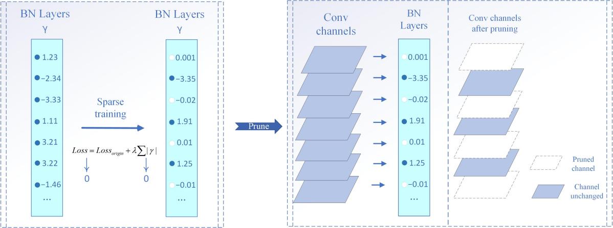 图3 BN层通道剪枝过程