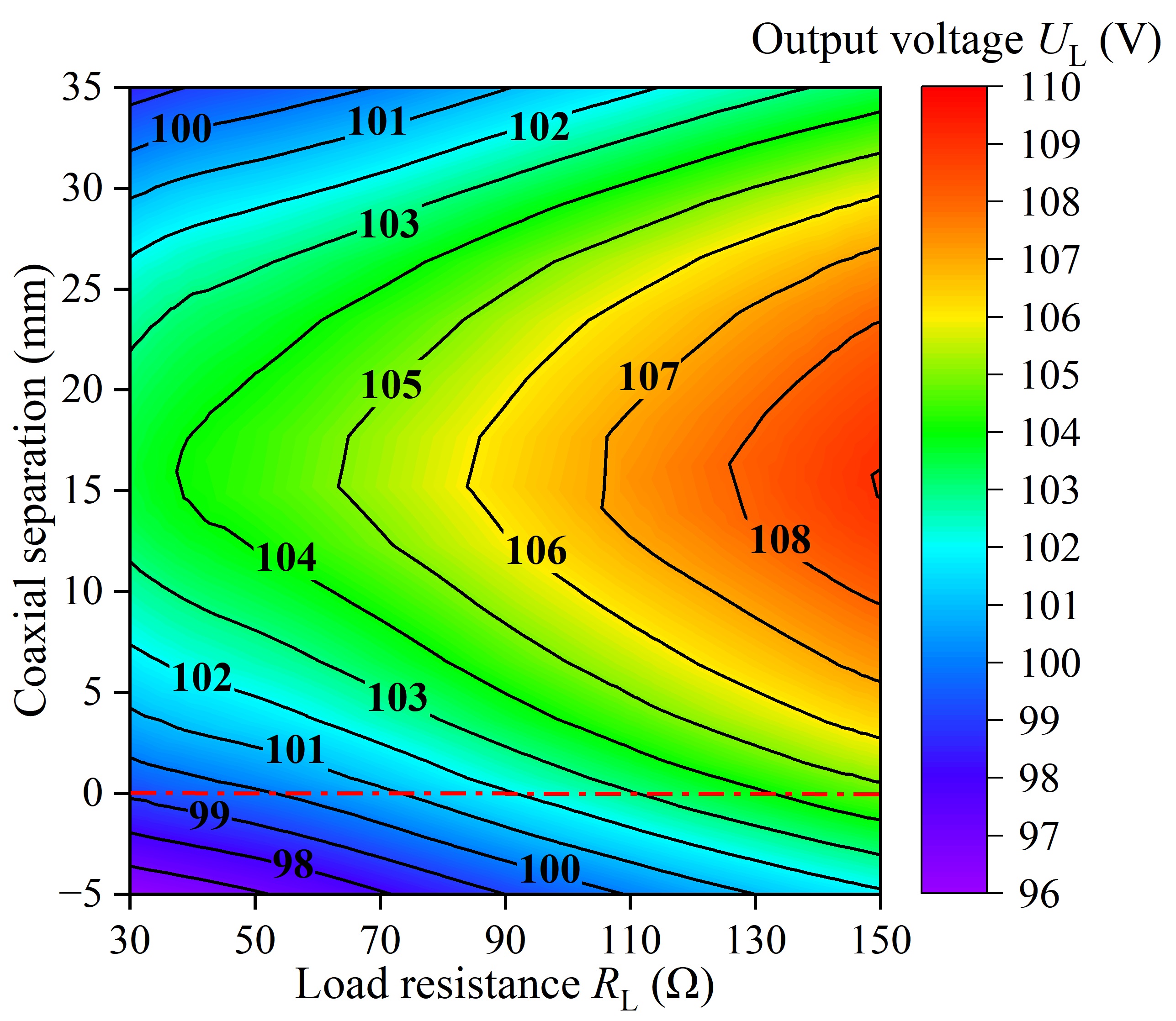 图5 负载电压UL随线圈分离和负载变化的曲线