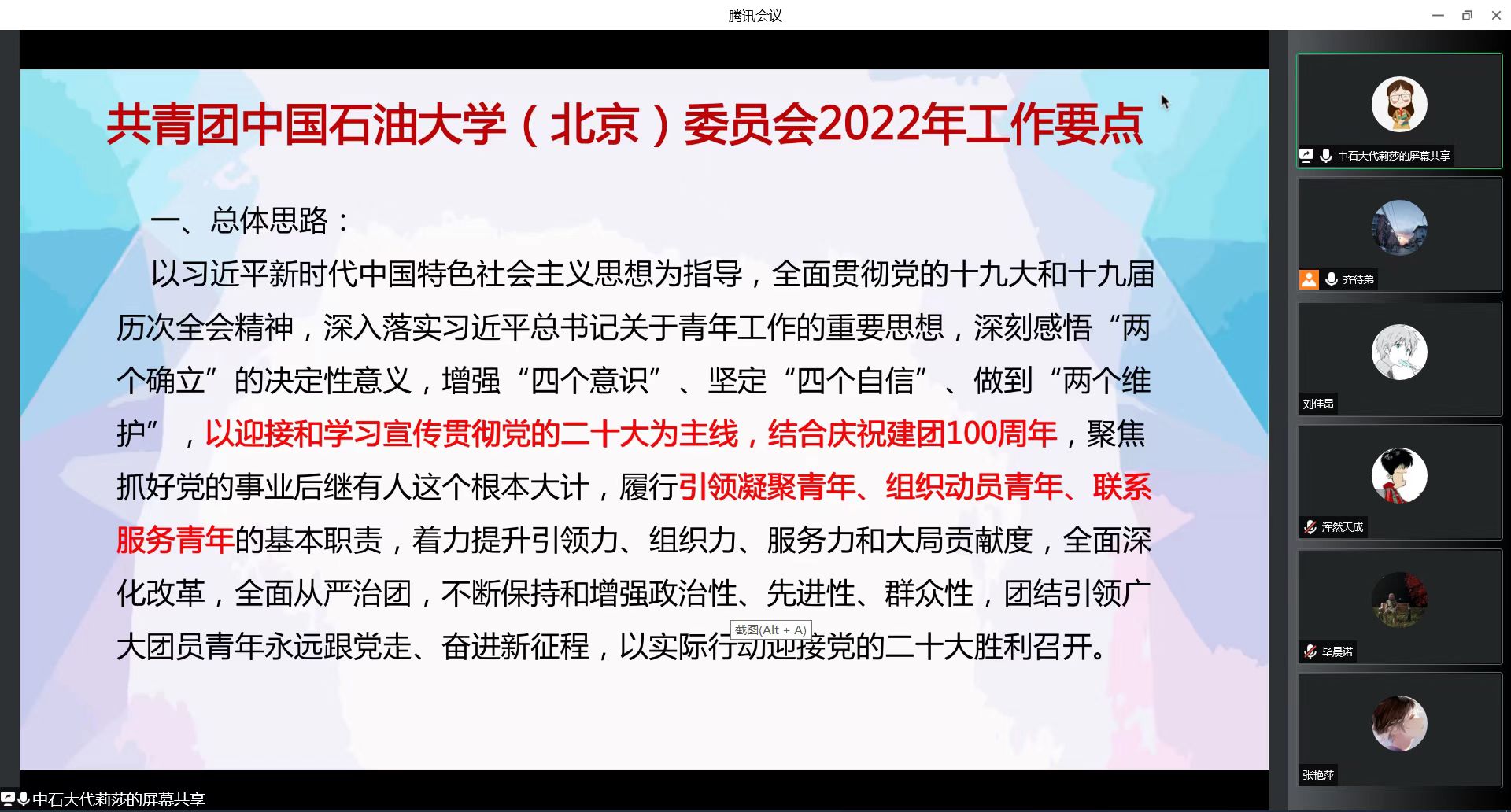 会上,代莉莎通报了2021年学院团委工作开展情况,以及学校和学院共青团2022年工作要点,并对2022年学院基层团组织工作进行了部署。她表示,2022年各团支部要以迎接和学习宣传贯彻党的二十大精神为主线,结合庆祝中国共产主义青年团成立100周年,扎实推动共青团的各项改革,引导广大共青团员弘扬爱国精神,树立报国之志,做好党的助手和后备军。