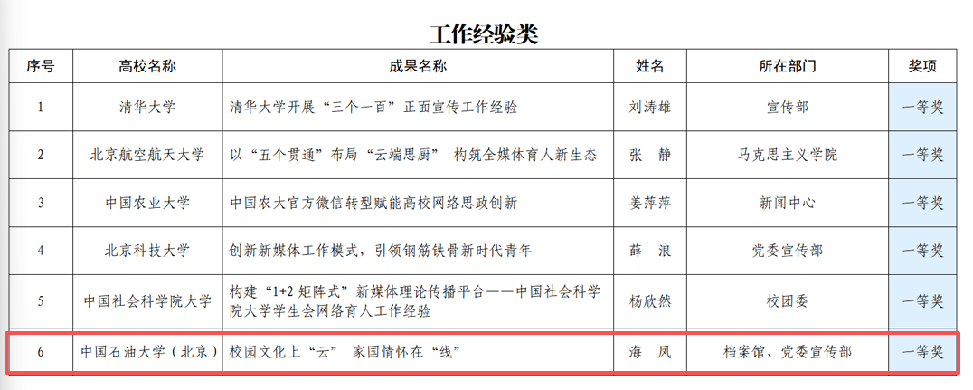 日前,北京高校思想政治工作研究中心对北京高校网络育人优秀成果进行了评选表彰,由SUNBET申搏官网档案馆、党委宣传部联合申报的“校园文化上‘云’ 家国情怀在‘线’”成果荣获北京高校网络育人优秀成果(工作经验类)一等奖。