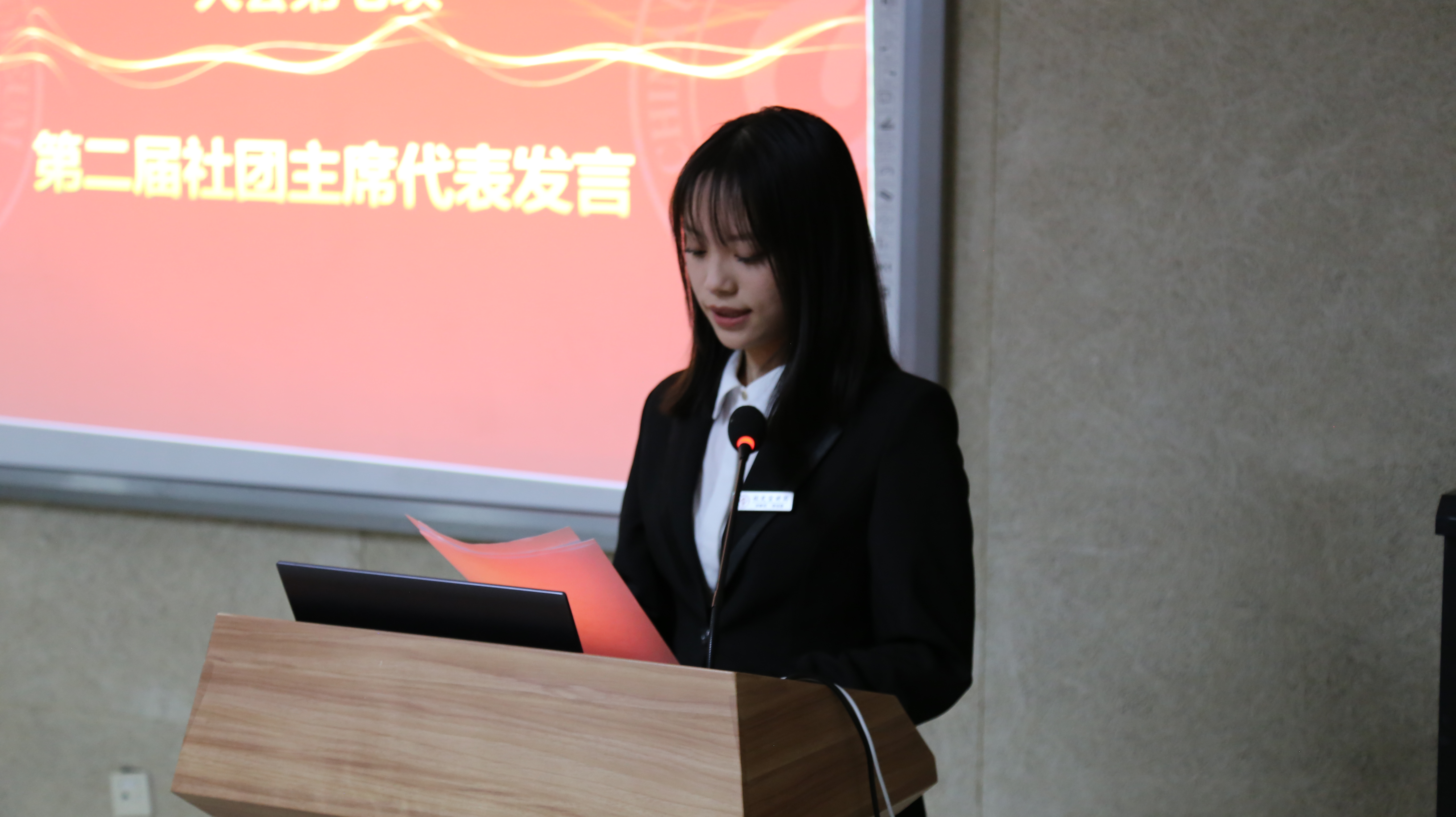 会上,第二届校史宣讲团副主席刘杰丽宣读了社团章程,校史宣讲团副主席尹冬然介绍了社团定位与制度、讲解队伍、社团活动等,校史宣讲团主席李佳蓉、部长代表郝帅、部委代表高晨曦分别畅谈了自己参与社团日常工作的感受以及带给自身的改变与成长,第一届校史宣讲团主席王春蕾表达了自己对于校史宣讲团的深厚感情,校社团建设指导部代表许子函对校史宣讲团工作表达了期待和展望。