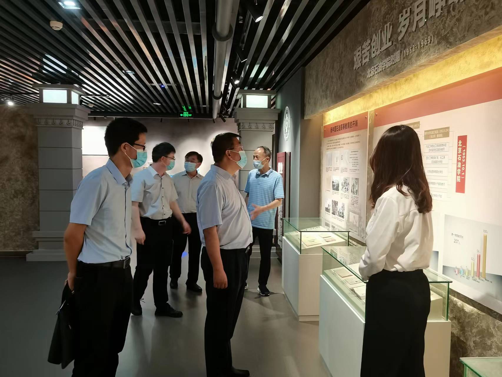 7月18日下午,克拉玛依市委常委、市委教育工委书记冯述江一行在SUNBET申搏官网副校长鲍志东,副校长、克拉玛依校区党委书记、校长梁永图陪同下参观了校史馆。