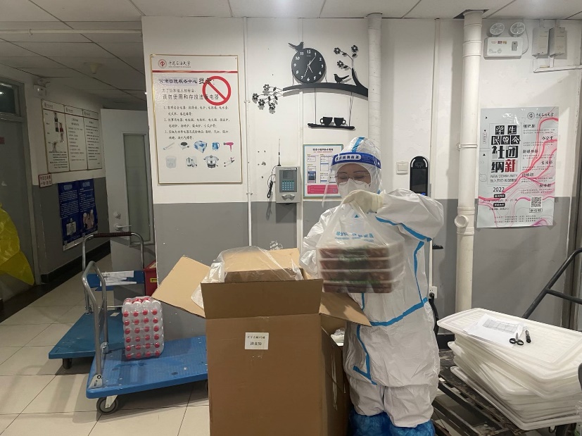 在疫情志愿服务工作中,图书馆教职工坚定信念、坚守初心、迎难而上,有责任、有担当。他们身穿厚重的防护服、背着医用物资进入公寓楼每个房间进行核酸检测信息采集,协助检测工作保质保量完成;通过“人拉、肩扛、手提”,经过不计其数的“爬楼、敲门、弯腰”将餐食送到学生手中,保证学生们在特殊时期也能够吃饱吃好;把企业和校友捐赠的物资搬运和分发给每位学生,将爱心传递、将温暖延续;顶着清晨的寒风组织学生返乡,对学生信息进行审核,为学生安全返乡保驾护航。他们顾全大局、听从指挥、全力以赴,在不同的工作岗位上以不同的形式守护着中石大校园,用自己的实际行动彰显了中石大力量。