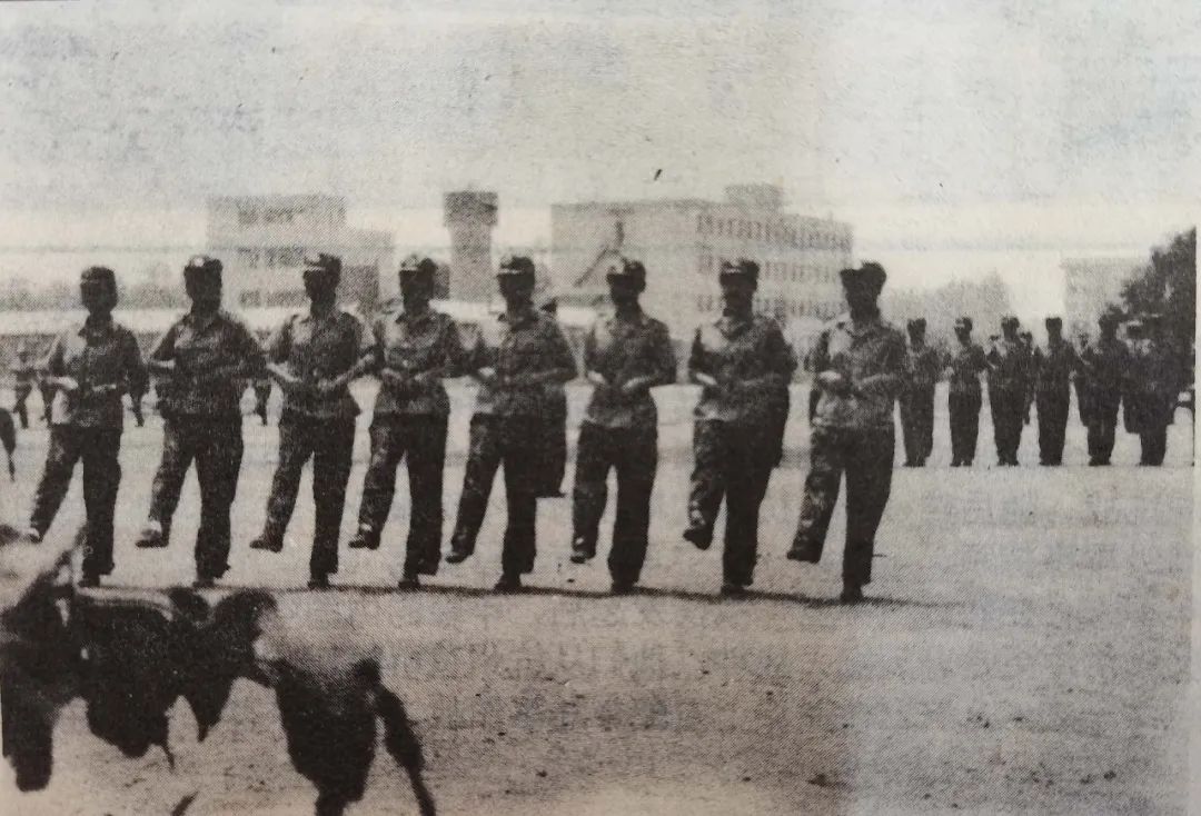 1997级学生在军训过程中练习正步走
