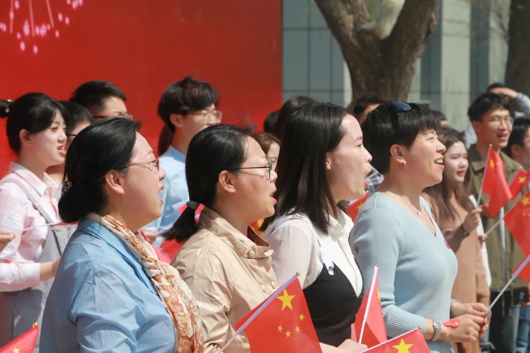 2019年4月4日,青年园南广场上,玉兰盛开,“我的祖国我奋斗 我为祖国献石油”中国石油大学庆祝中华人民共和国成立70周年的红色背景板在阳光照耀下熠熠生辉。正值下课时间,师生从校园各个方向汇聚到南广场上,共同唱响《我和我的祖国》《我为祖国献石油》,嘹亮的歌声、激昂的旋律响彻校园。中石大人用快闪的方式来祝福祖国。