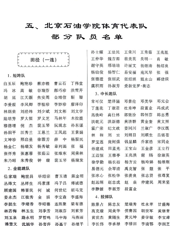 北京石油学院体育代表队部分队员名单
