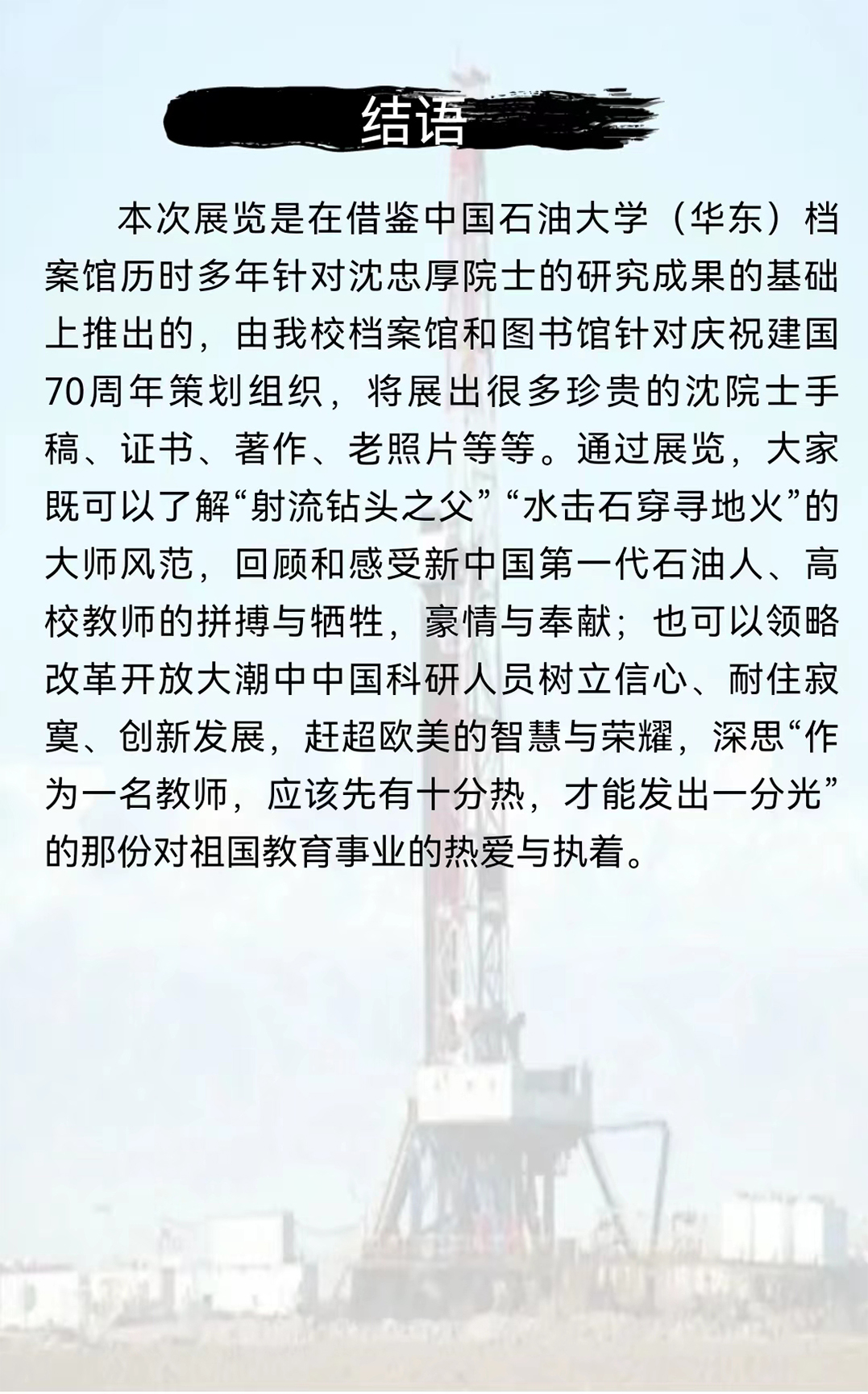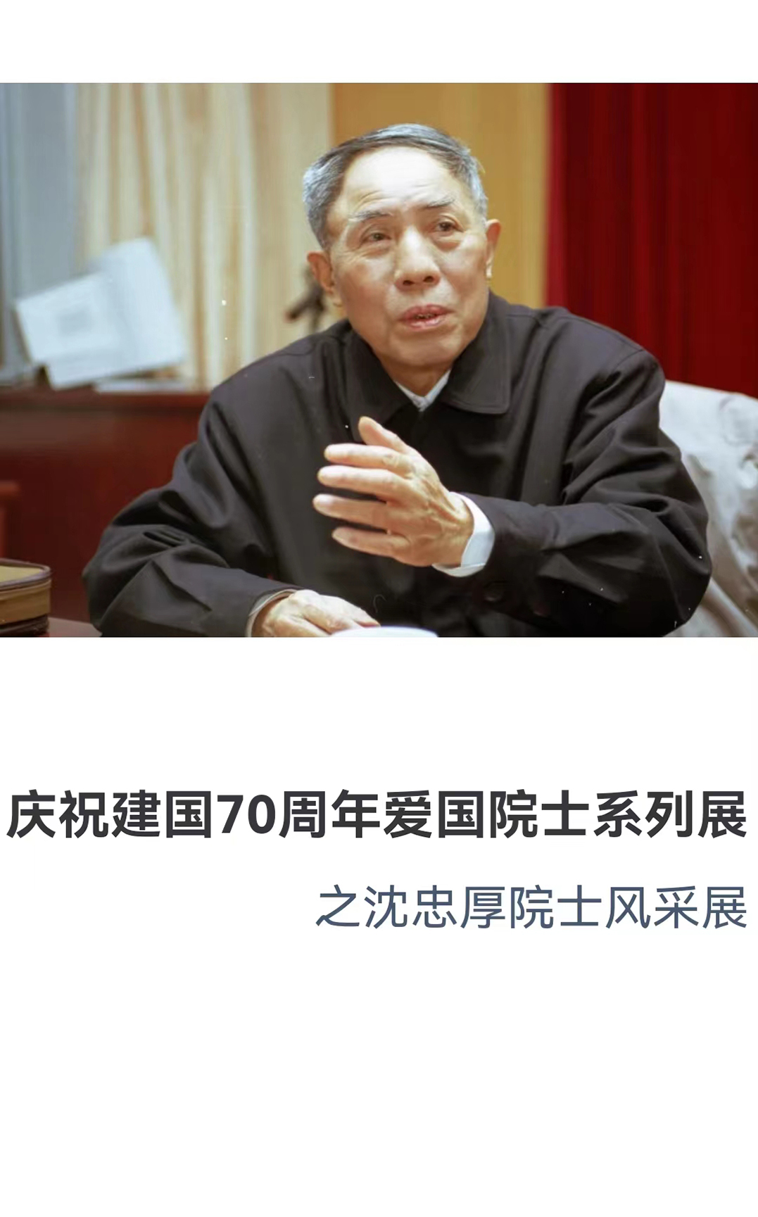 庆祝新中国成立70周年爱国院士系列展之沈忠厚院士风采展
