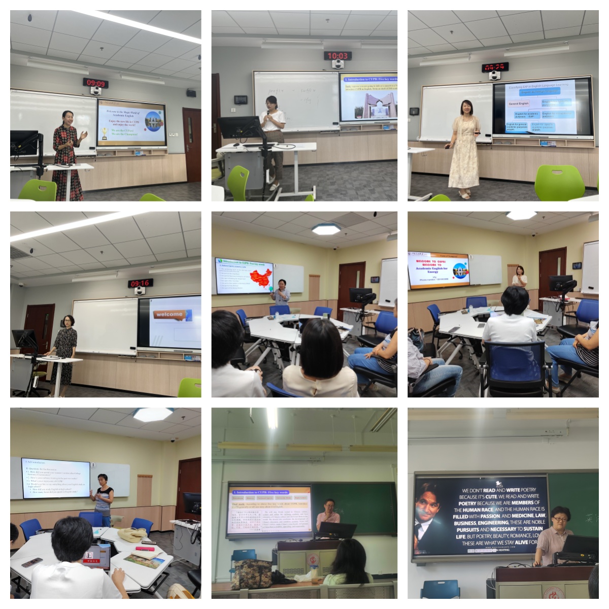 9月,为提升教育教学质量,促进教学交流,以积极姿态迎接教育部本科教育教学评估,外国语学院公共英语教学部开展教学演练活动,教学部全体教师参加。
