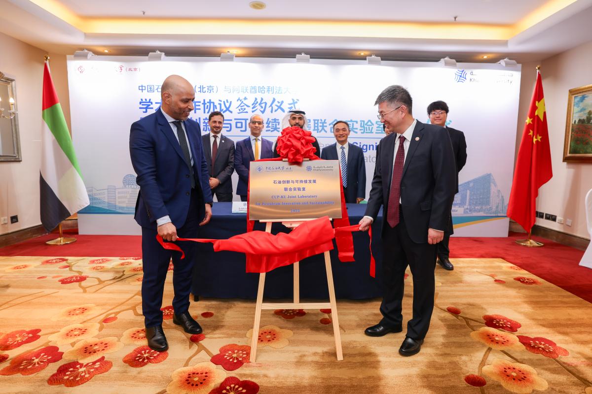 On April 7th, China University of Petroleum (Beijing) and Khalifa University held a signing ceremony for a new academic cooperation agreement, alongside the unveiling of the CUP-KU Joint Laboratory for Petroleum Innovation and Sustainability in Beijing. Jin Yan, President of China University of Petroleum (Beijing), and H.E. Ebrahim Al-Hajri, President of Khalifa University, attended the event. H.E. Khaled Alshehhi, Acting Ambassador of the United Arab Emirates to China, was also present to witness the signing and unveiling.