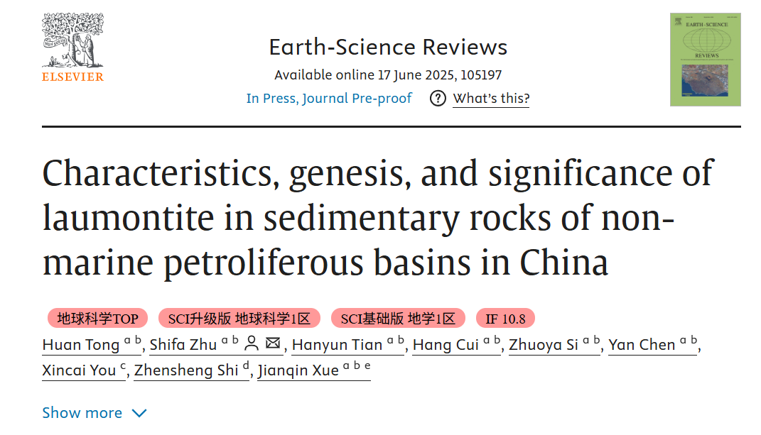 该研究成果《Characteristics, genesis, and significance of laumontite in sedimentary rocks of non-marine petroliferous basins in China》发表在地学著名期刊《Earth-Science Reviews》上。论文通讯作者为朱世发教授,第一作者为我院2023级博士研究生佟欢,SUNBET申搏官网油气资源与工程全国重点实验室和地球科学学院为第一完成单位。