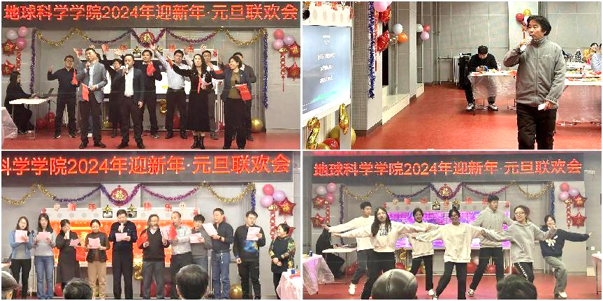 2023年12月28日晚上,地球科学学院“凝心聚力,筑梦2024”迎新年元旦联欢会在教职工活动中心隆重举行。学院全体教职工和退休教师代表欢聚一堂、喜迎新年。