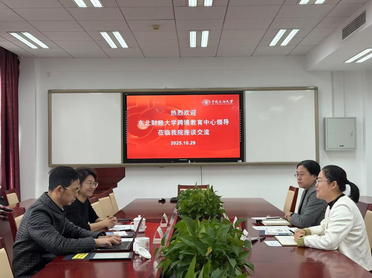 10 月 29 日上午,东北财经大学跨境教育中心主任丁晓玉、主任助理徐宙一行来访,就跨境教育发展展开调研座谈。学院副院长刘一凝、出国留学教育中心主任万璐出席此次座谈。
