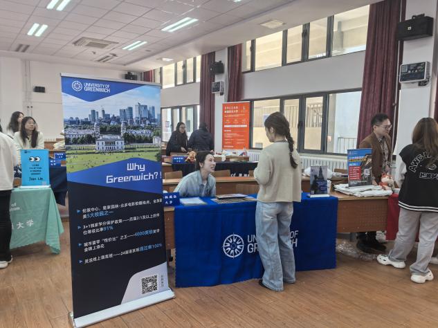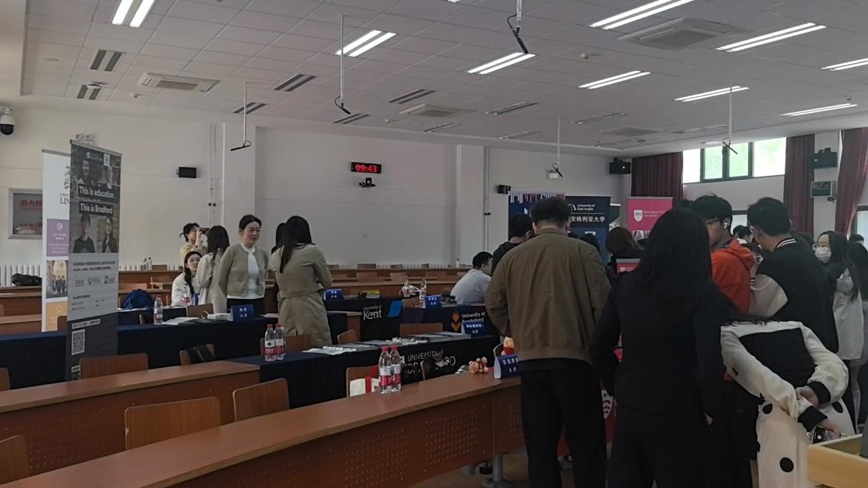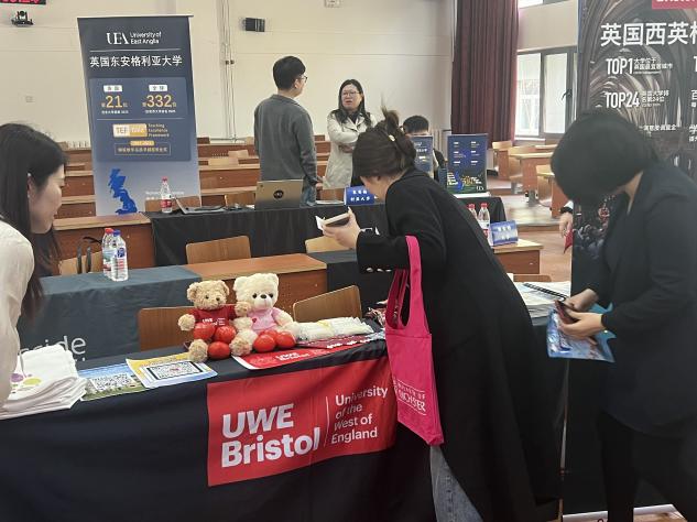 活动现场气氛热烈非凡,国外院校代表们精心布置了宣传展位。展台整齐摆放着丰富的介绍资料,内容涵盖了学校历史文化、学科优势,以及 SQA 项目详细的课程设置和留学优势等,一应俱全。