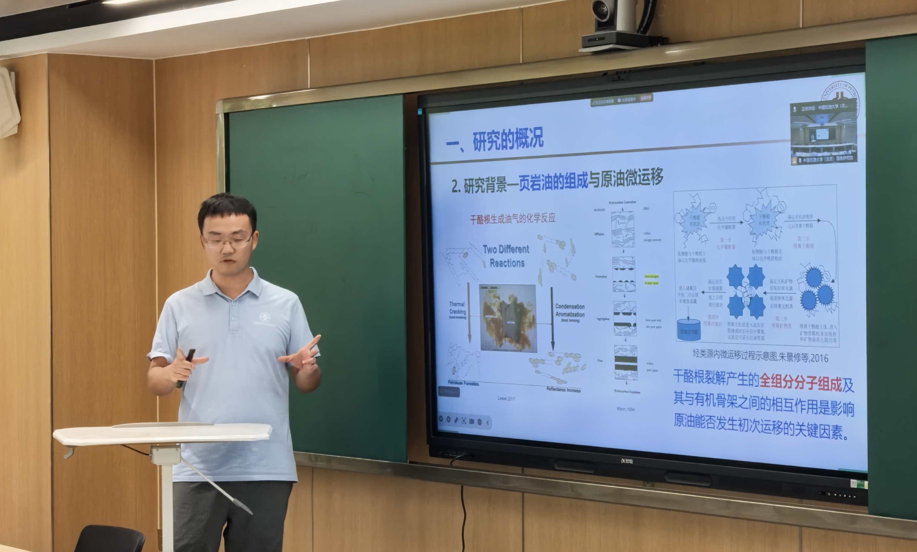 派驻研究生徐甲博、伍正宇、梁佳贞、樊依霖分别做《准噶尔盆地西部现今地温场特征研究》《页岩油分子团簇的流-固耦合——纳米限域体系下页岩油微运移机制》《琼东南盆地长昌-北礁凹陷层序地层划分对比》《海底峡谷汇流过程对盐底辟响应的定量分析》主题汇报。