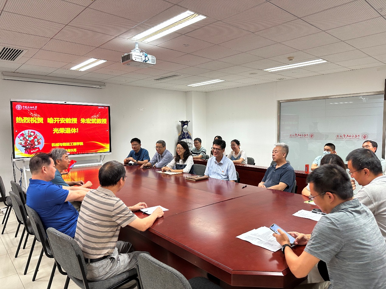9月7日下午,机械与储运工程学院在主楼B921举办2023年下半年退休教师荣休座谈会,庆祝喻开安教授和朱宏武教授光荣退休。机械学院党委书记闫亮亮,院长李振林,副书记鞠斌杰,副院长刘书海、左丽丽,机电系教师参加了本次座谈会,会议由工会主席彭鹤主持。
