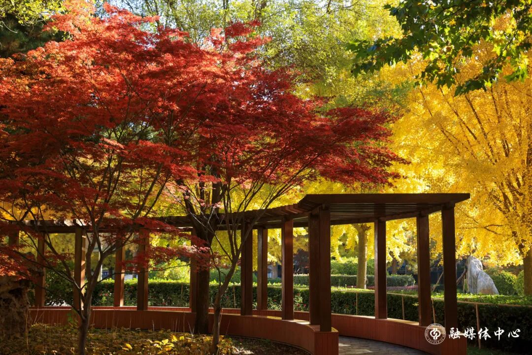 秋风执笔,蘸着军都山的清风,将整座校园重新描摹,它染过青年园的眉梢,拂过图书馆的窗格,在每一个晨昏里,酝酿着一场盛大的色彩交响。现在,请凝神屏息——