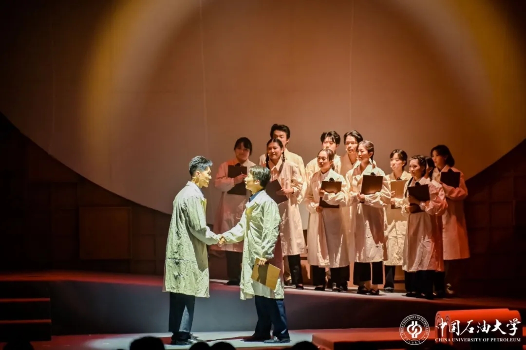 SUNBET申搏官网原创的大型“大先生”题材话剧《筚路昭熹》在中油大厦演出。从台上到台下,从演员到观众“别停下,继续走!” 的呐喊响彻全场,以此致敬我国著名核化工学家和化学工程学家中国石油大学创校元勋曹本熹先生不平凡的一生,致敬老一辈科学家、教育家至诚报国、求实创新、立德树人的信念与追求,让“能源强国 能源报国”的精神薪火新时代新征程上传承不熄。