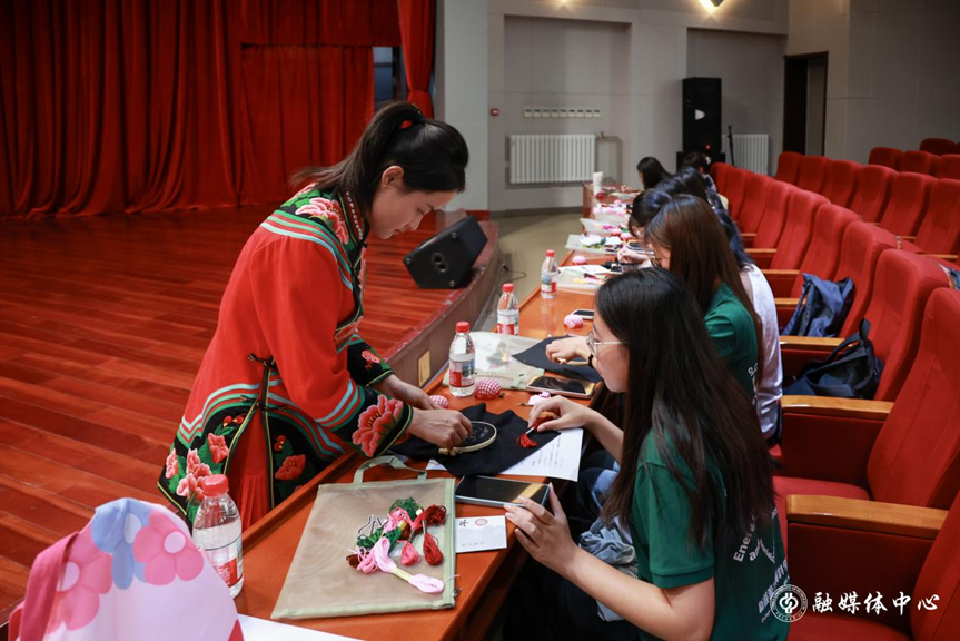 丁兰英还为学校师生准备了彝绣体验道具。活动现场,绣娘一对一指导师生体验非遗文化技艺。学校为丁兰英颁发了“文化创意导师”聘书以及双百讲坛“特别主讲人”奖牌。