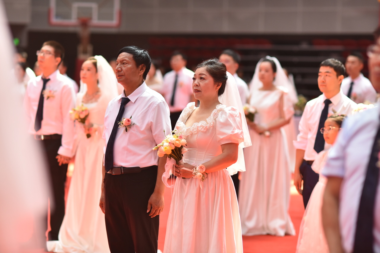 6月28日,“天山缘起 疆爱永恒”情牵中石大集体婚礼在克拉玛依校区红山湖体育馆举行,55对在新疆这片热土建功立业并喜结良缘的伉俪重返母校,共同举行结婚典礼。