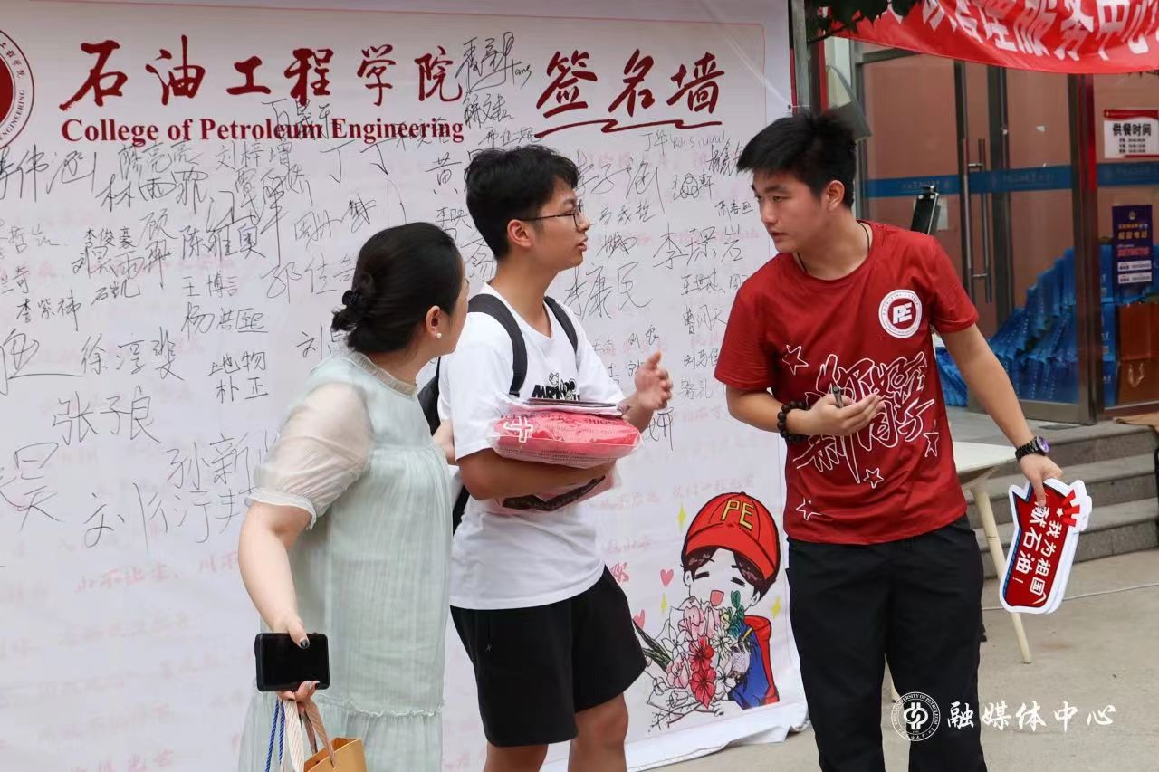 在石油工程学院新生宿舍,新生们告诉王同奇,学校基础设施完善,学习生活环境都很好。王同奇勉励他们,从入学开始就立下“我为祖国献石油”的雄心壮志,为祖国加“油”,为民族争“气”。