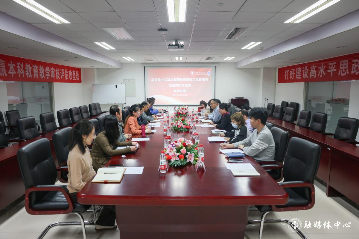 为深入学习贯彻习近平文化思想,12月11日上午,马克思主义基本原理教研室教工党支部与校党委宣传部党支部开展联学共建,紧密结合推动党的创新理论武装进头脑、进课堂,提升宣传思想文化工作的针对性、实效性和吸引力、感染力进行交流研讨。