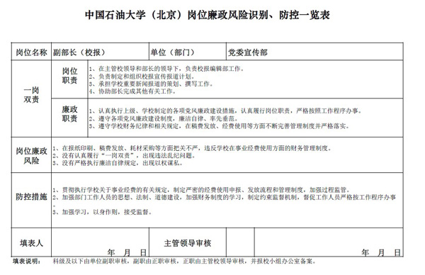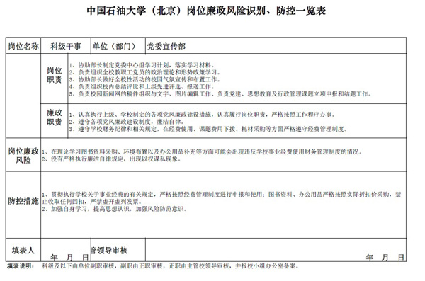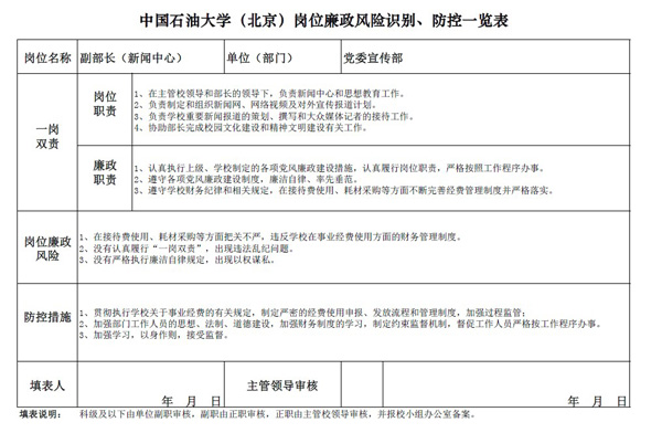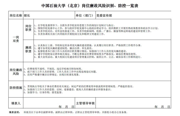 SUNBET申搏官网党委宣传部岗位廉政风险防控表