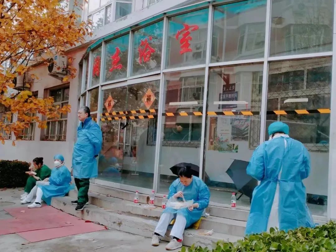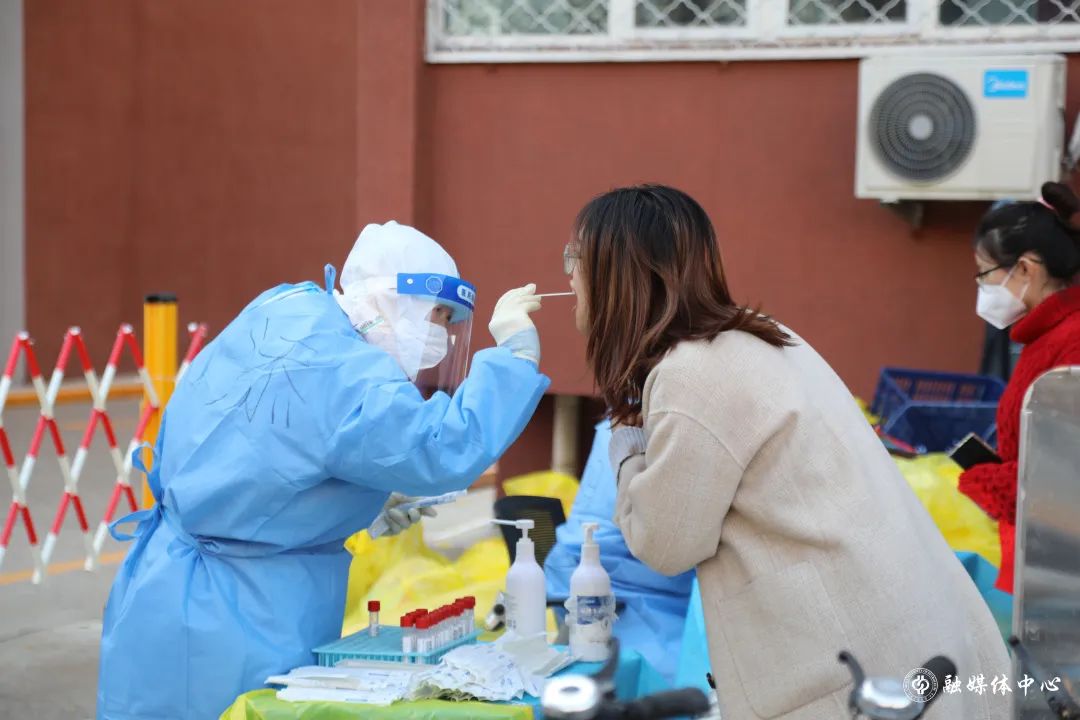 校医院的白衣战士们紧急商讨防疫措施、准备防疫物资、为师生提供核酸检测服务,即使忙得没有时间吃饭也依然坚守岗位。