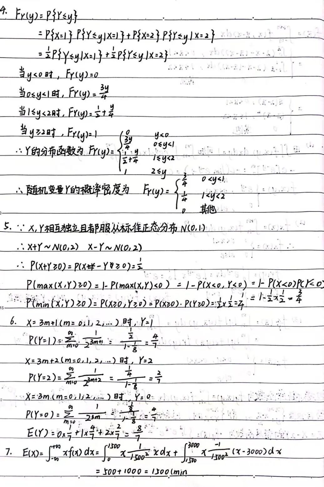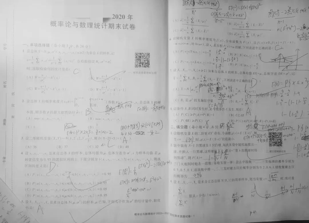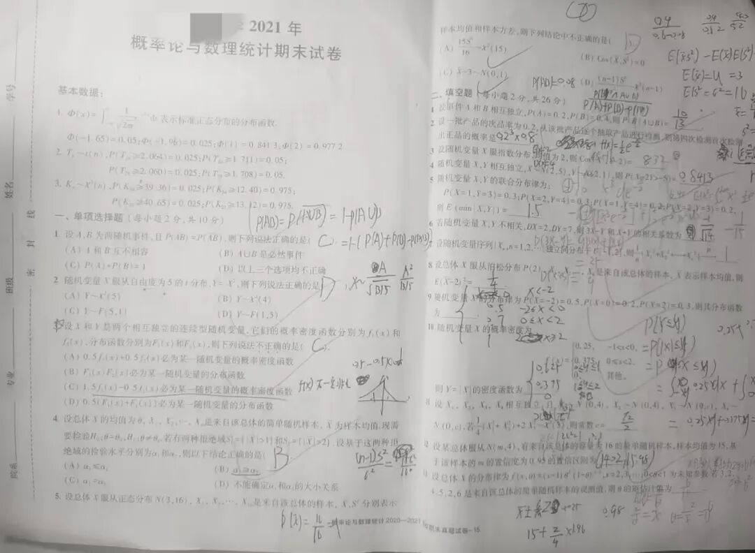 课后我会及时总结知识点、补全笔记,对经典题型,在笔记旁标注关键步骤,明确解题思路;总结后及时完成作业,通过实际解题巩固知识,避免 “听懂不会用” 。考前,我会分模块针对性复习:比如概率论侧重逻辑推导与解题思路训练;随机变量是重难点,要串联记忆各类分布和公式;数理统计部分优先记忆高频公式,可以列表对比辅助。