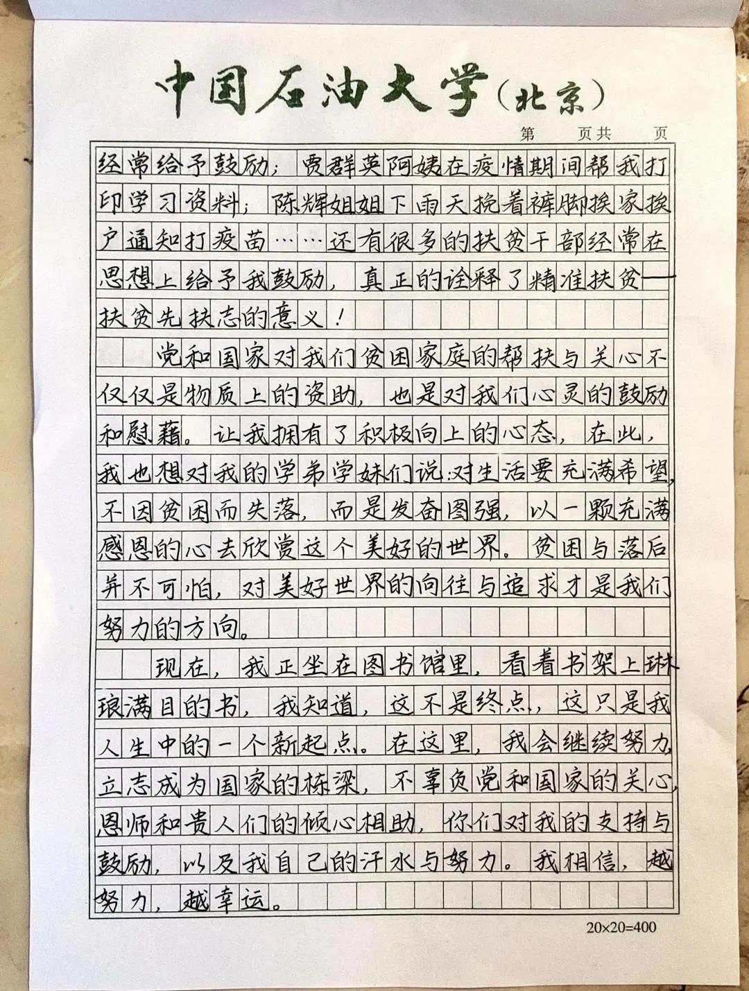“其实我没这么棒的。”喻鑫说出自己的心声,她希望弟弟和村里的孩子们要对生活充满希望,珍惜当下,努力奋斗,正如她信中对学弟学妹们的寄语:“用一颗充满感恩的心去欣赏这个美好的世界,对美好世界的向往与追求才是我们努力的方向。”