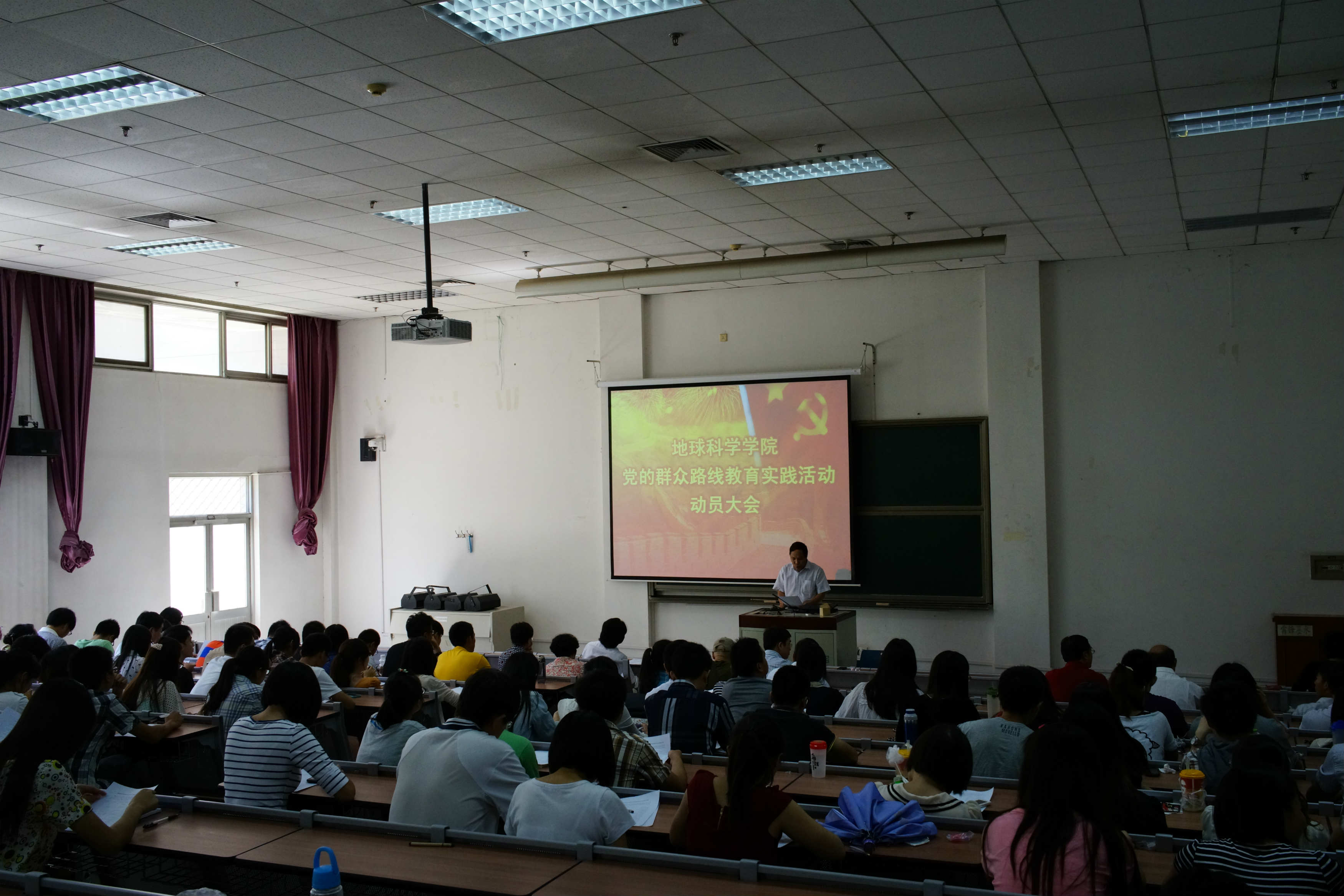 9月10日,中国石油大学地球科学学院在地质楼阶梯教室召开党的群众路线教育实践活动动员大会。地球科学学院全体教工党员和全体学生支部委员参加了动员会。