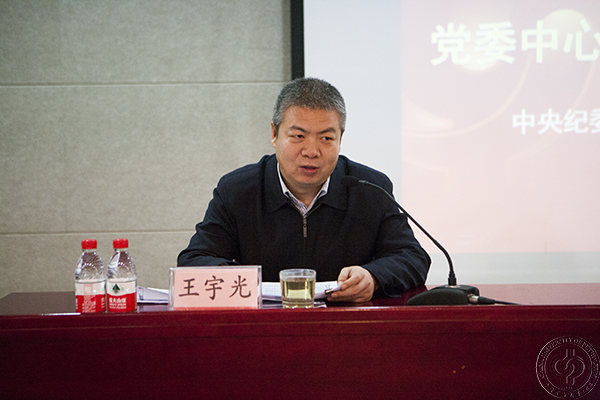12月10日下午,中国石油大学在国际交流中心306报告厅召开党委中心组理论学习扩大会,学习贯彻《中国共产党廉洁自律准则》和《中国共产党纪律处分条例》,中央纪委宣传部副部长王宇光应邀作了专题辅导报告。校党委中心组成员,全体二级干部参加了会议。党委副书记、纪委书记刚文哲主持会议。