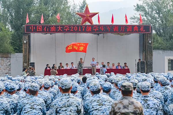 9月4日上午,中国石油大学2017级学生军训开训典礼在北京市平北军训基地举行。石大党委副书记雷玉江,平北军训基地、承训部队相关领导以及学生工作处、团委和各学院相关负责人出席开训典礼,带队教师及参训学生参加典礼。