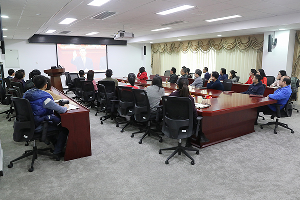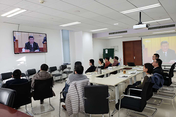 12月18日上午,中国石油大学党委书记山红红、校长张来斌赴人民大会堂参加大会;全体在校的党委常委、党委委员在主楼A1502会议室观看了直播。石大克拉玛依校区党工委,各分党委、党总支、直属党支部按照学校党委要求,组织干部师生通过多种途径、多种形式观看了大会盛况,认真学习领会大会精神。