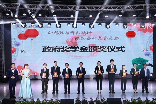 汪庆华、陈桂刚、肖磊及企业代表分别为获得政府奖学金、企业奖学金、国家奖学金和国家励志奖学金的学生颁奖并送上祝福。