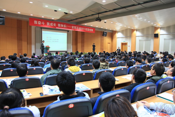 10月19日下午,安东石油技术(集团)有限公司针对2011届毕业生的宣讲招聘会在石大翠宫报告厅举行。安东石油CEO罗林、安东石油执行副总裁李冰南等一行5人出席了宣讲招聘活动。宣讲会由校党委副书记雷玉江主持。