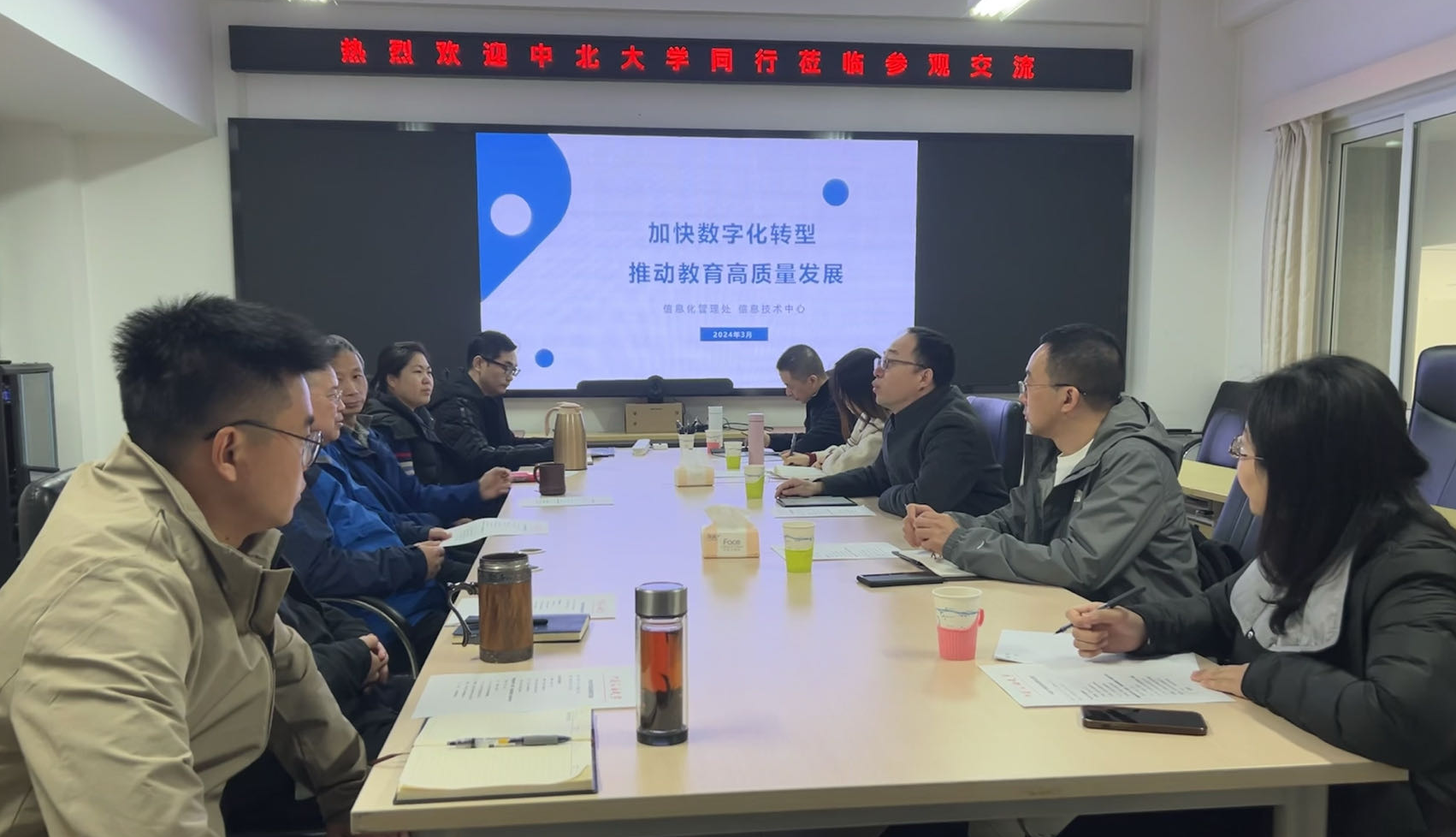 中北大学信息中心一行来我校调研交流3月14日上午,中北大学信息中心主任孙豫峰一行5人来我校作访问交流,信息处处长张云祥、副处长庞飞及几位业务骨干参加了本次交流会。 交流会上,张云祥对孙主任一行表示欢迎,对中石大也是一次宝贵的学习...2024-03-22 -