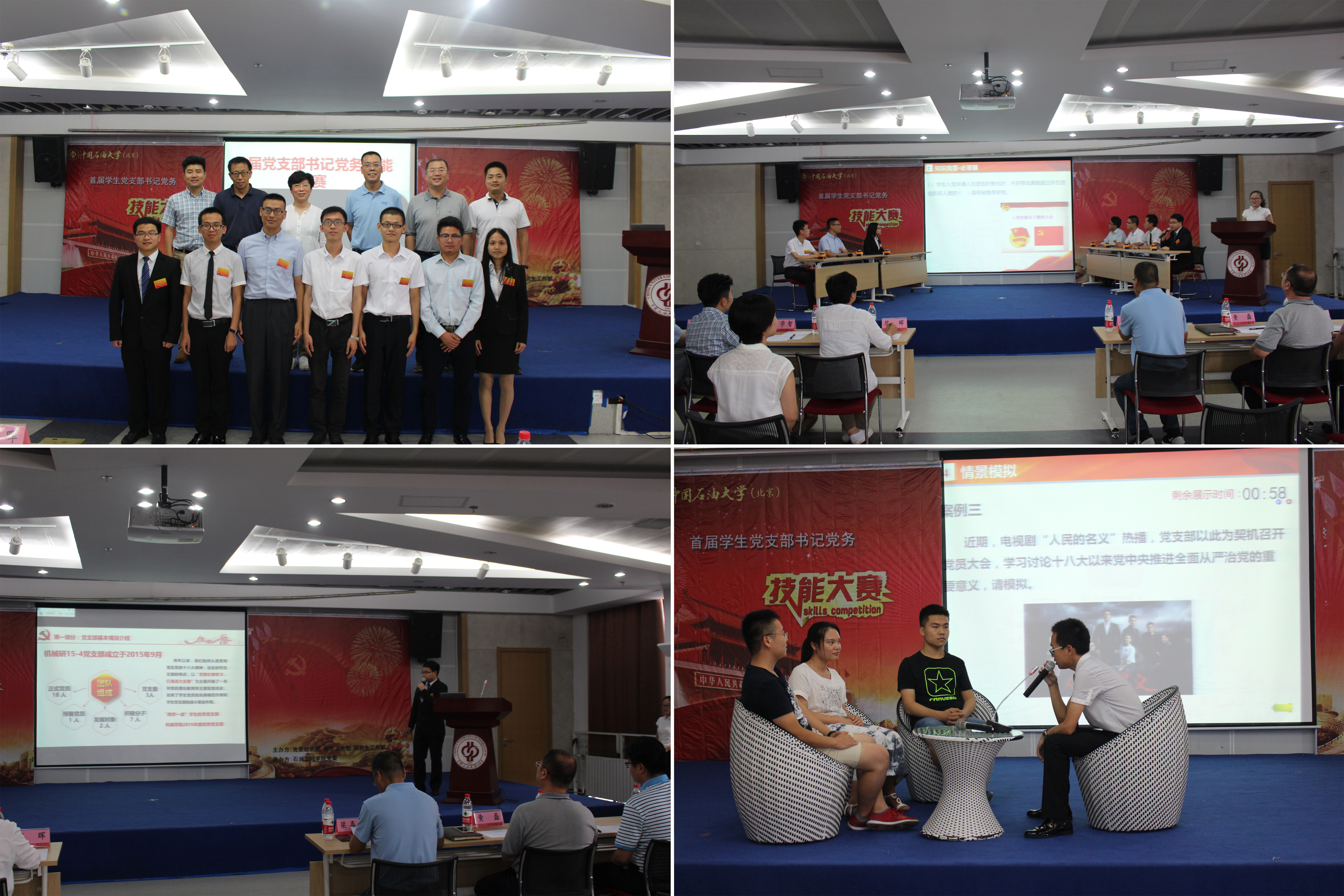 6月28日下午,SUNBET申搏官网首届学生党支部书记党务技能大赛决赛在学生活动中心410会议室举行。组织部部长梁喜书、副部长陈晖、学生工作处副处长黄磊及各学院党委副书记出席活动。大赛由党委组织部、学生工作处主办,石油工程学院党委承办。